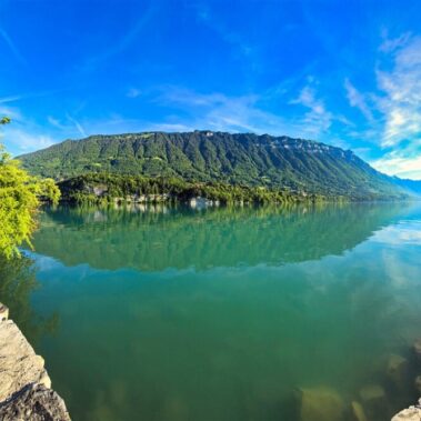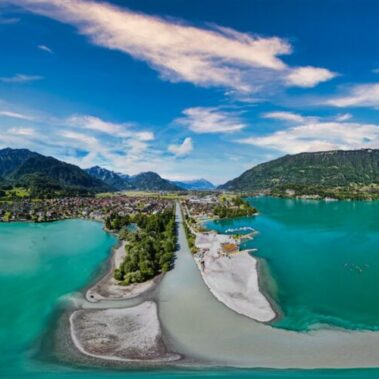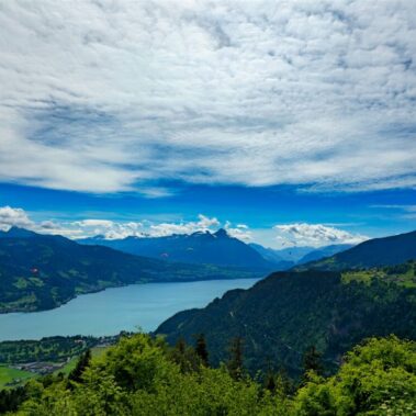 It’s quieter than Interlaken but still very well-connected by public transport and roads.